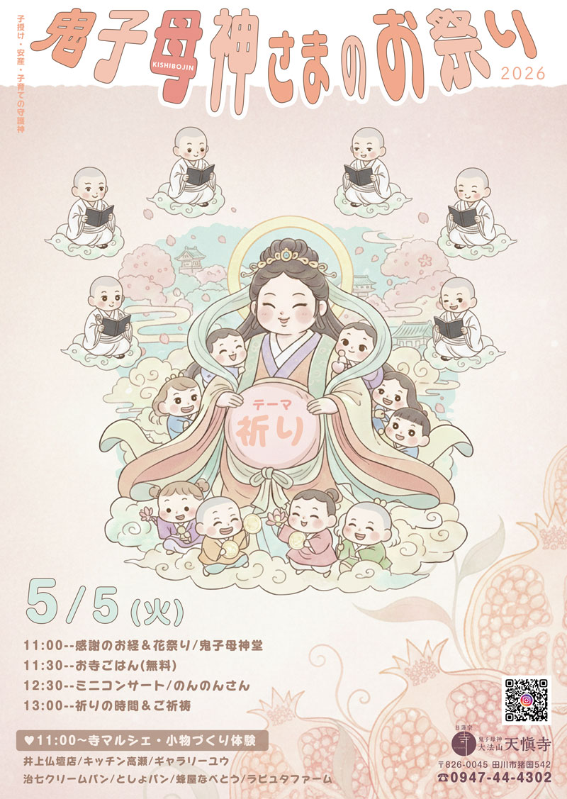 天愼寺の鬼子母神さまのお祭り2026を令和8年5月5日(火)11:00~14:00に開催します。